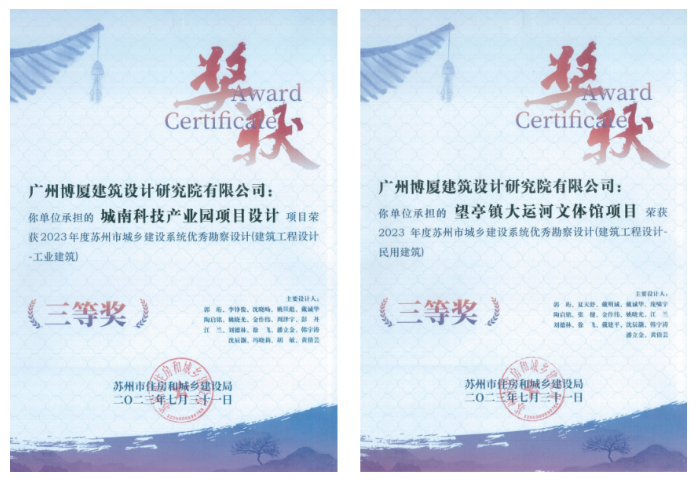 恭贺博厦荣获2023年苏州市城乡建设系统优秀勘察设计三等奖